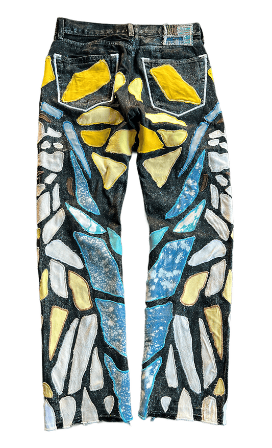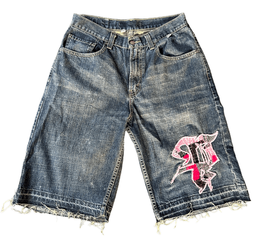 CRYSTAL PAINTER GRADIENT DENIM SHORTS