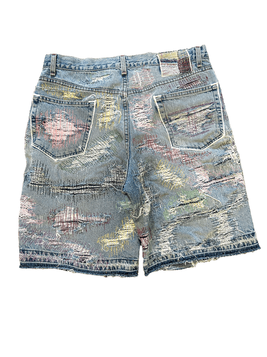 CRUST PATCHWORK DENIM SHORTS