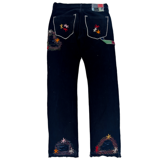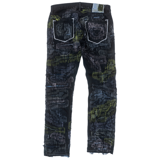 HALLOWEEN GLOW IN THE DARK TATTERED STITCHWORK DENIM