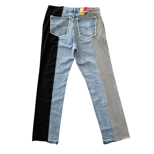 MULTI-COLOR TORSO DENIM PATCHWORK TRUCKER JACKET