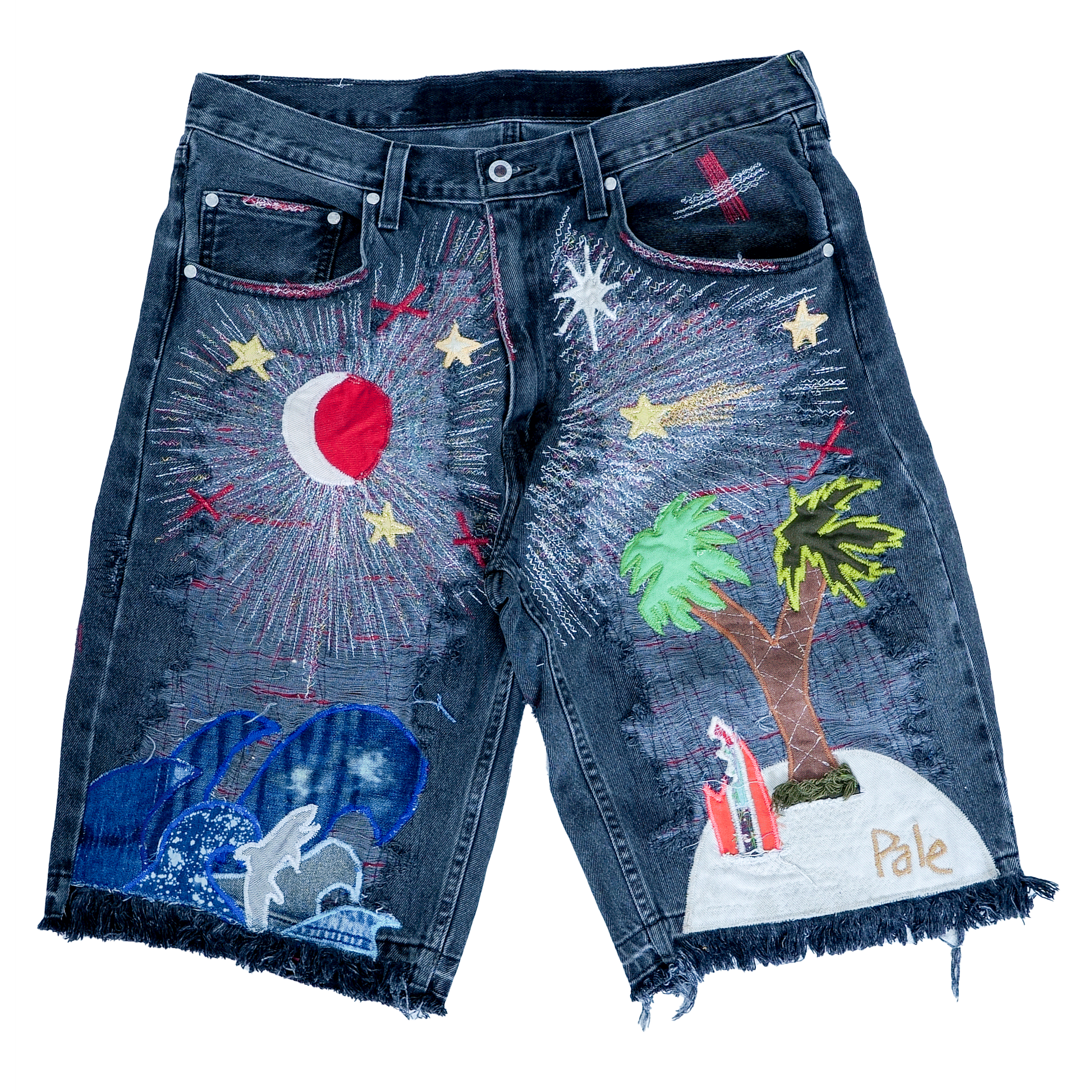 BLOOD MOON HAWAIIAN DENIM SHORTS