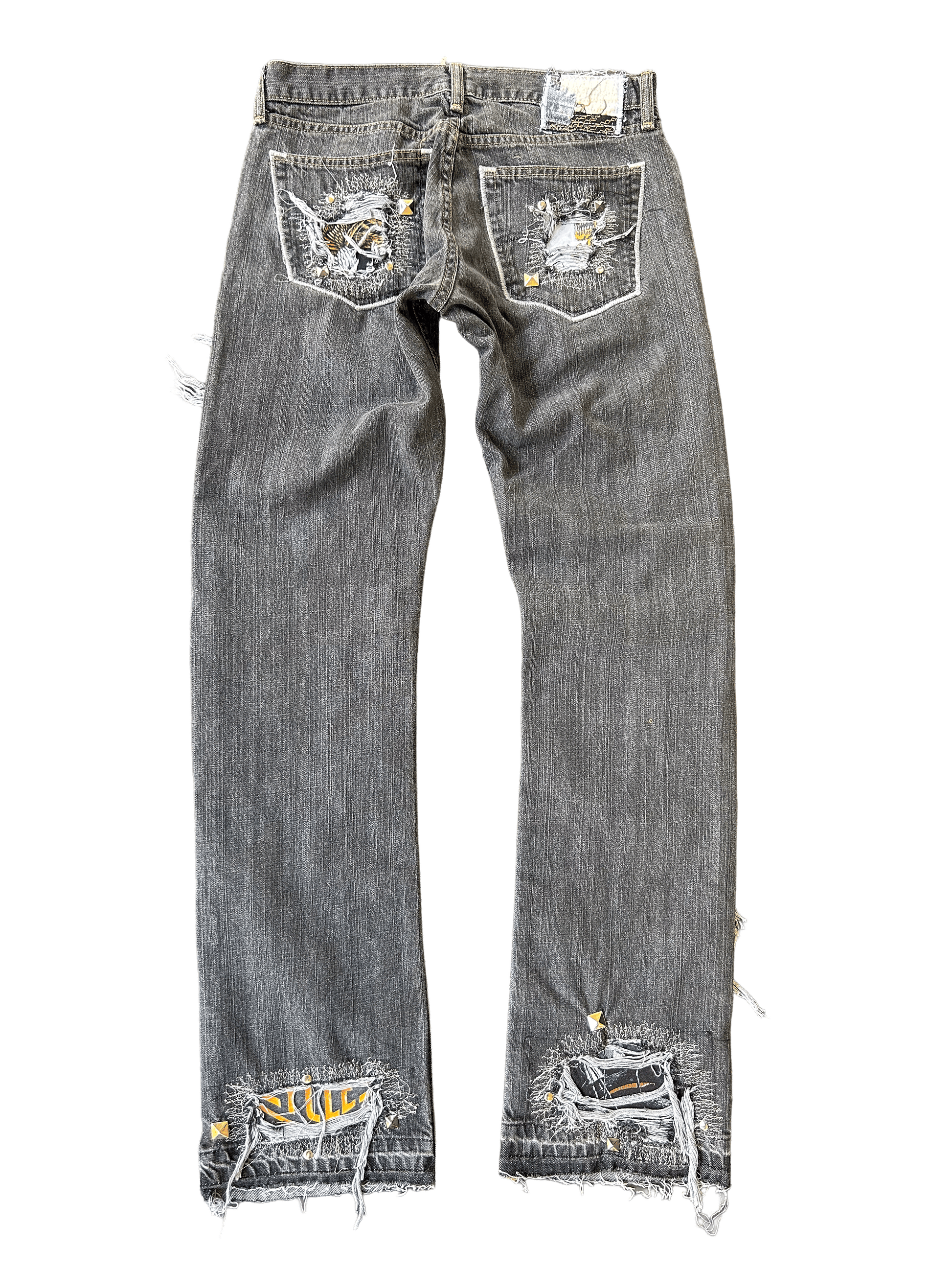 - PYRAMID STUDS OUTLINING POCKET AND ZIP FLY DETAILS