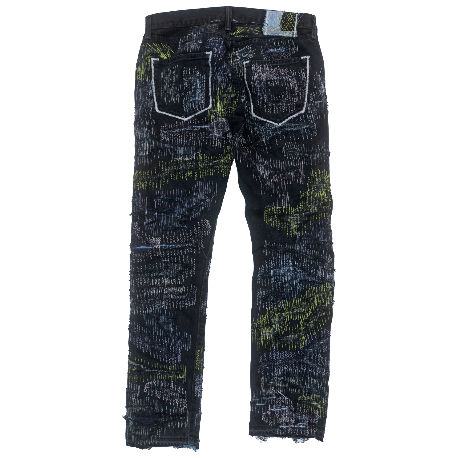HALLOWEEN GLOW IN THE DARK TATTERED STITCHWORK DENIM