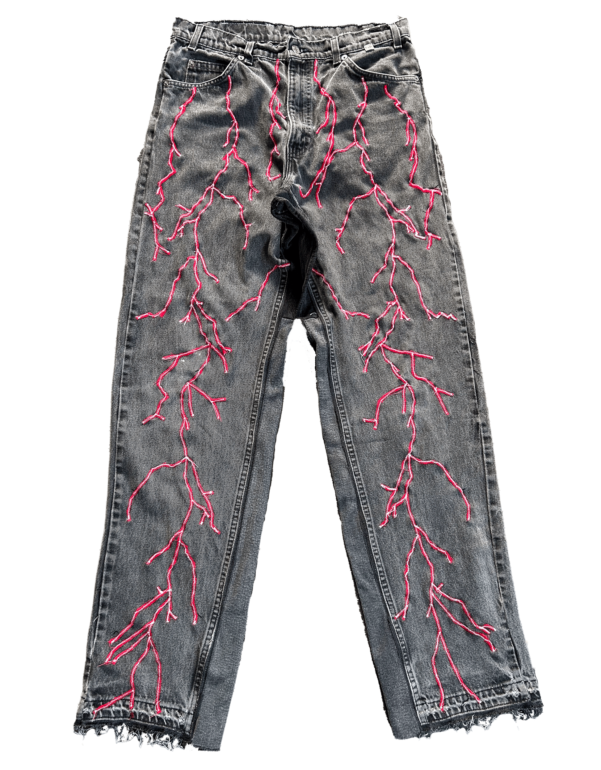 - RED LIGHTNING EMBROIDERY AT FRONT