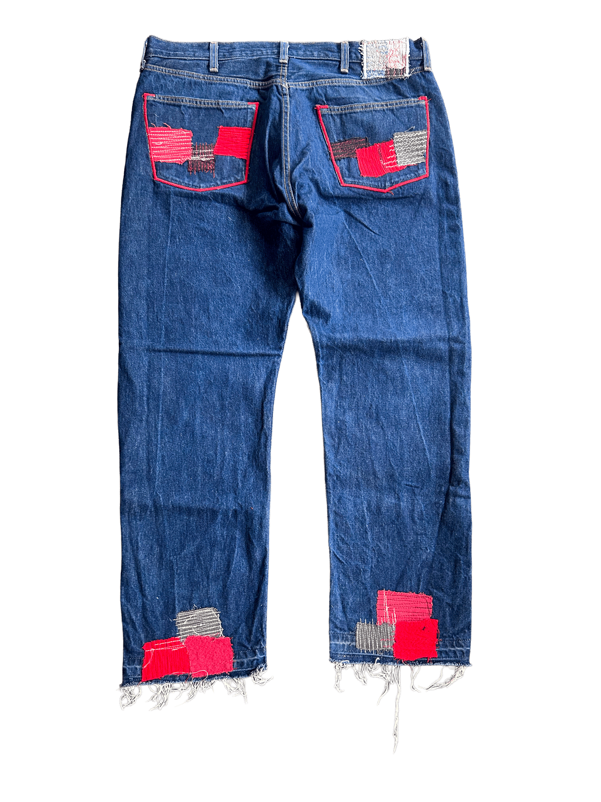 RED PATCHWORK PANELS AT THIGHS & BACK