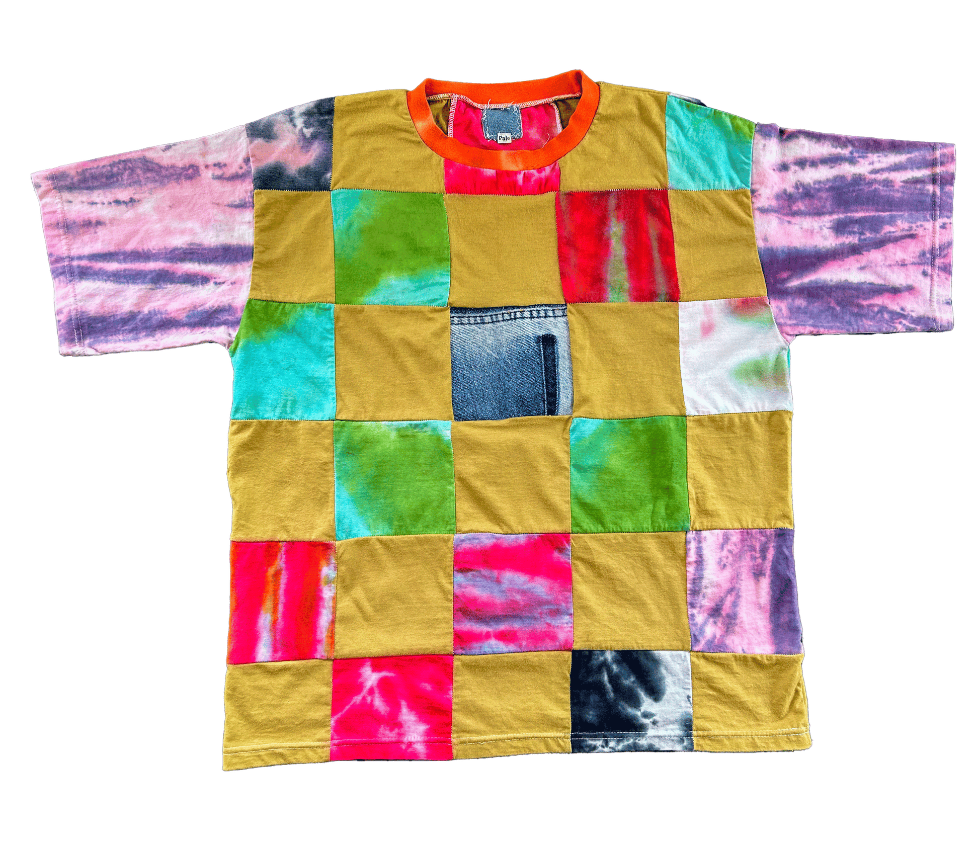 - TAN & TYE DYE PATCHES QUILTED THROUGHOUT