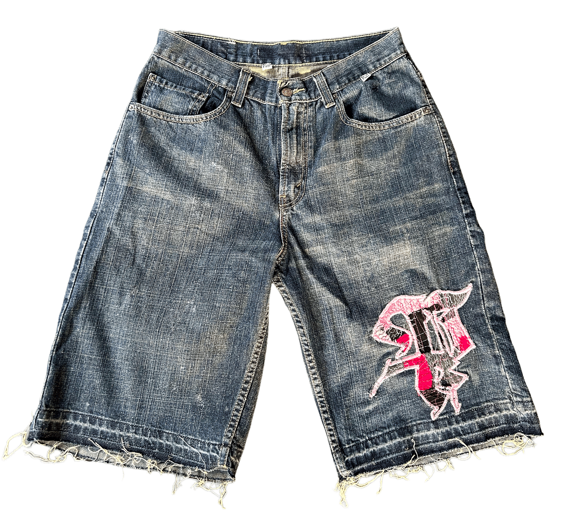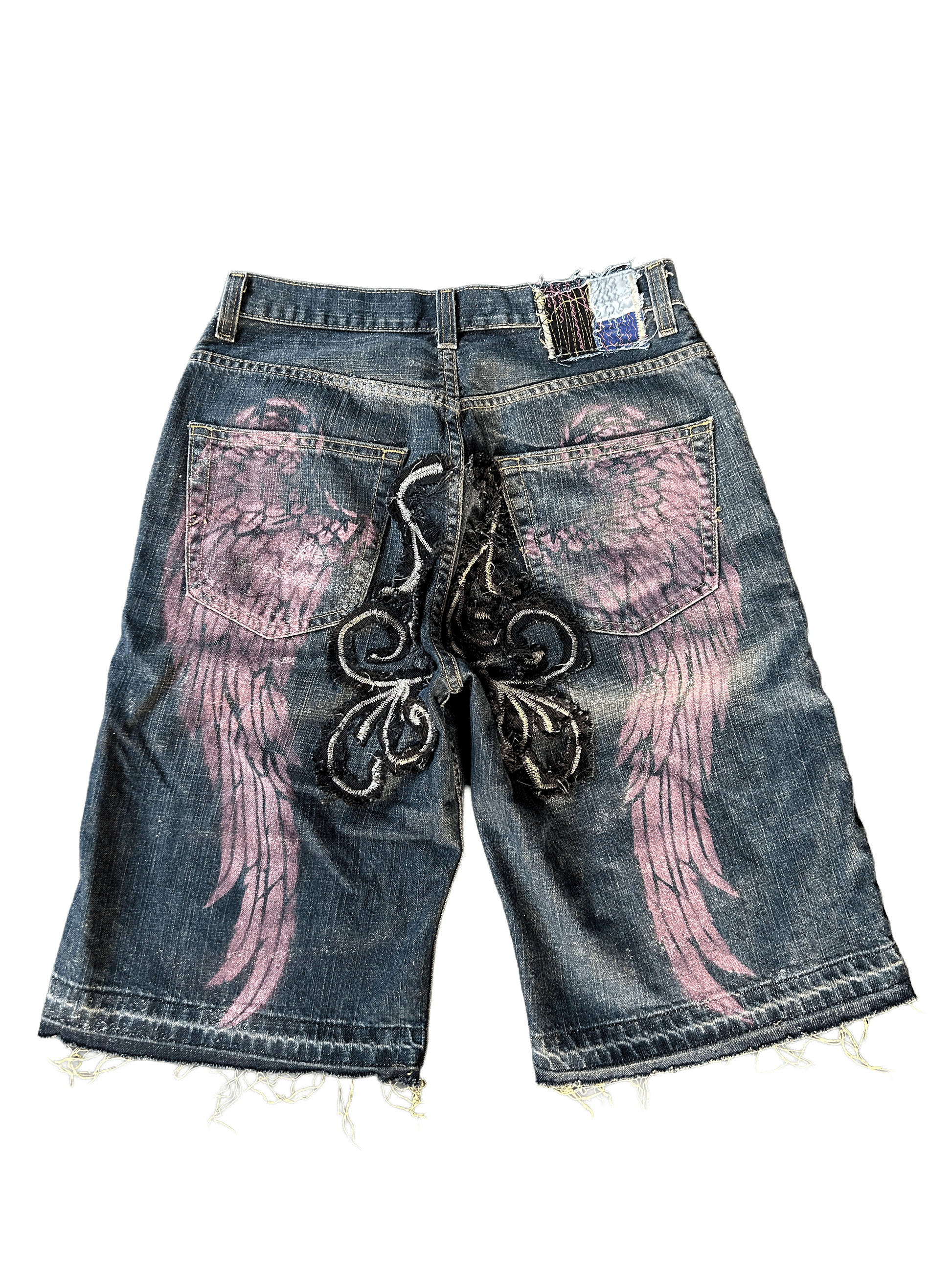 - BAROQUE FLOURISH EMBROIDERY WITH DENIM FRAY AT BACK OF DENIM